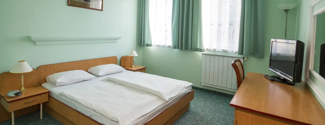 A szálloda 34 kényelmes, jól felszerelt, légkondicionált szobájából 27 standard, 5 superior típusú, további kettő pedig lakosztály. A szobák egy része a földszinten, a többi az első, illetve második emeleten helyezkedik el. Minden szobában alapfelszereltség a televízió, hűtőszekrény, a nemzetközi hívásra is alkalmas telefon, a WI-FI, és a légkondicionálás. A standard szobák kétágyasak, mely igény szerint pótággyal bővíthető, ugyanakkor alkalmasak egyágyas használatra is. A superior szobákban franciaágy található, a hozzá tartozó fürdőszobák közül választható sarokkádas vagy zuhanyozós, illetve kettő közülük erkélyes szoba. A lakosztályokban a nappali és a hálószoba elkülönül egymástól, mely által még nagyobb élettér áll rendelkezésre, ezért ideális választás családok részére. A földszinten egy szoba mozgáskorlátozott vendégek részére került kialakításra. Valamennyi szolgáltató részleg (drink bár, étterem, különterem, szaunahelyiség) akadálymentesített, így gond nélkül megközelíthető kerekes székkel, valamint babakocsival egyaránt.