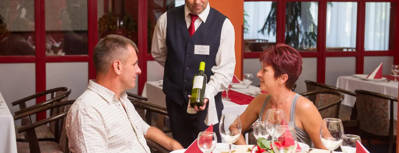 A szállodában két klimatizált étterem várja vendégeit reggelenként svédasztalos, főétkezések alkalmával pedig a'la carte-, büfé-, illetve menürendszerű kínálattal. A belső parkban nyári rendezvények lebonyolítására alkalmas grillkert található, ahol előzetes megrendelés alapján kemencében, faszénparázson és bográcsban magyaros ételkülönlegességek is elkészíthetők.