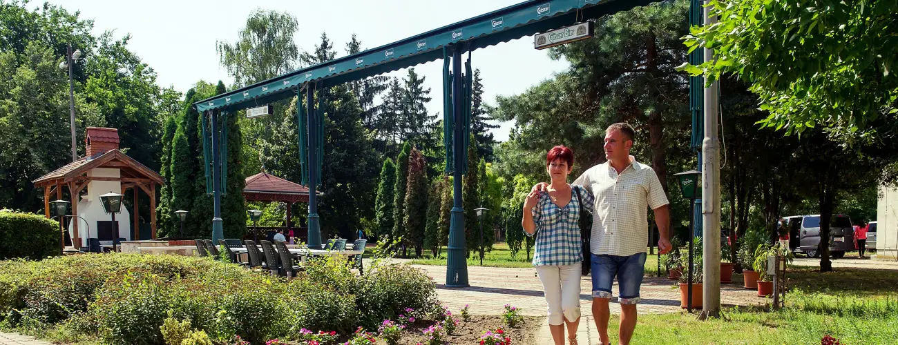 A szállodában két klimatizált étterem várja vendégeit reggelenként svédasztalos, főétkezések alkalmával pedig a'la carte-, büfé-, illetve menürendszerű kínálattal. A belső parkban nyári rendezvények lebonyolítására alkalmas grillkert található, ahol előzetes megrendelés alapján kemencében, faszénparázson és bográcsban magyaros ételkülönlegességek is elkészíthetők.