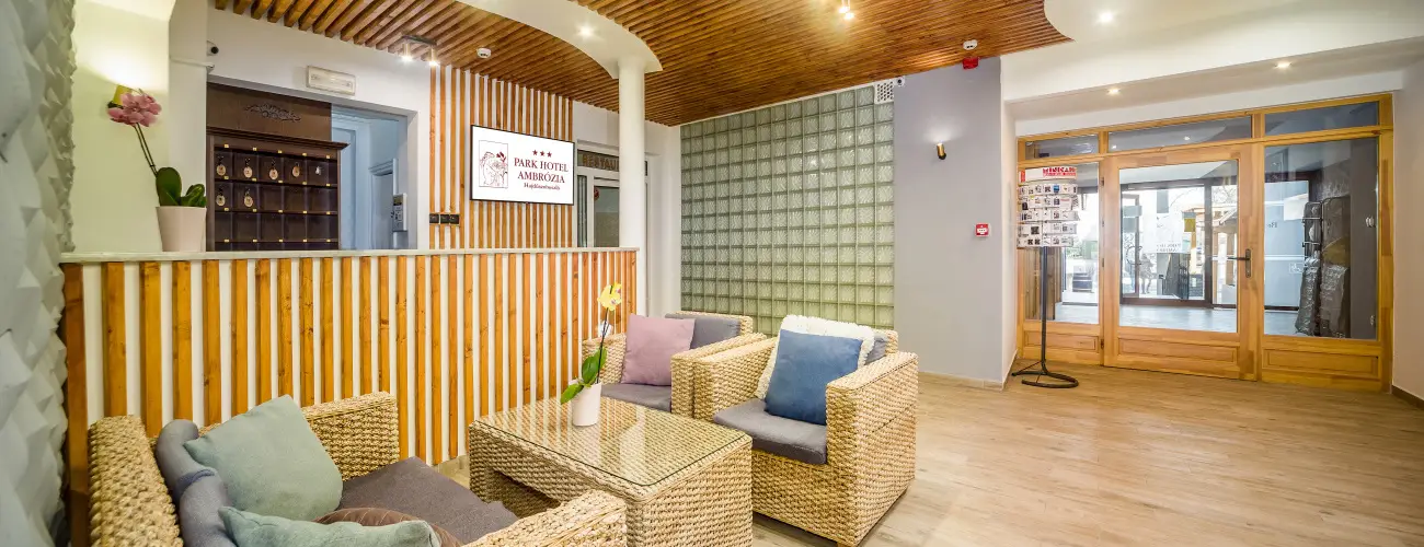 A Park Hotel Ambrózia Hajdúszoboszló fürdőjének közvetlen szomszédságában várja vendégeit, háromcsillagos színvonalú szolgáltatásokkal, családias hangulattal, konyhával is felszerelt apartmanokkal és saját wellness részleggel.